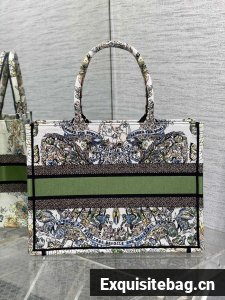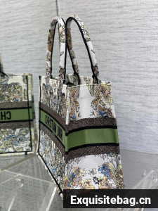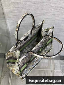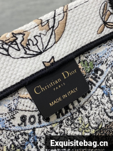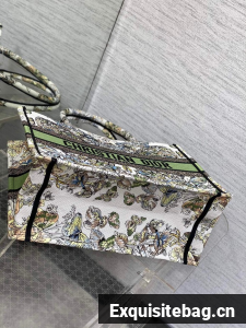 DIOR BOOK TOTE White and green Butterfly Around The World Embroidery M1296ZE
