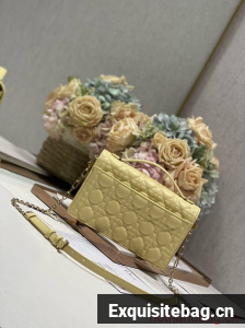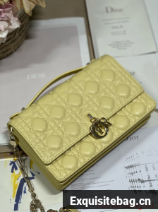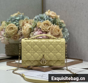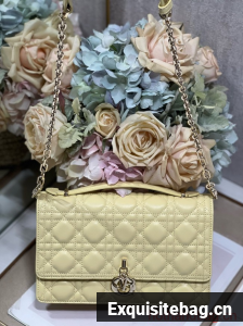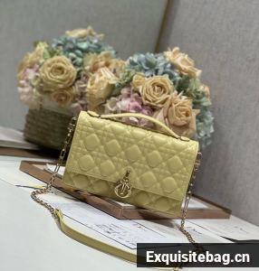 MISS DIOR TOP HANDLE BAG Pastel Yellow Cannage Lambskin M0997ON