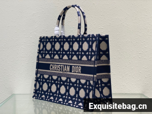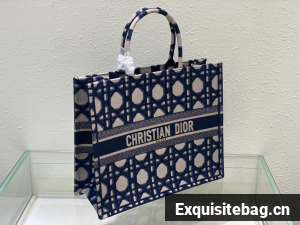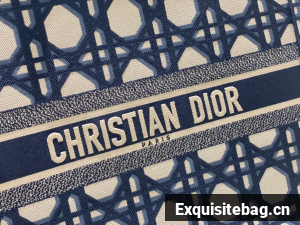 Revealed at the Fall-Winter 2023-2024 fashion show, the Dior Book Tote introduced by Maria Grazia Chiuri, Creative Director of Christian Dior, has become a staple of the Dior aesthetic. Designed to hold all the daily essentials, the style is fully embroidered with the beige and blue Macrocannage motif. Adorned with the Christian Dior Paris signature on the front, the large tote exemplifies the House"s signature savoir-faire and may be carried by hand or worn over the shoulder.