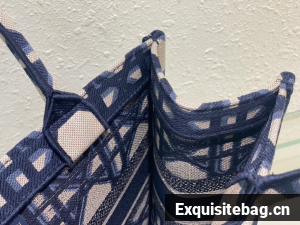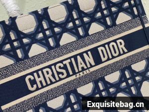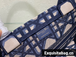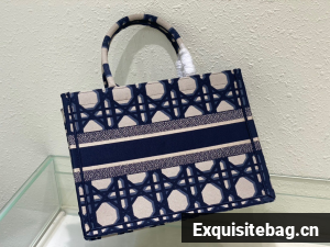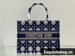 Introduced by Maria Grazia Chiuri, Creative Director of Christian Dior, the Dior Book Tote has become a staple of the Dior aesthetic. Designed to hold all the daily essentials, the style is fully embroidered with the beige and blue Macrocannage motif and is adorned with the Christian Dior Paris signature on the front. Exemplifying the House"s signature savoir-faire, the medium tote may be carried by hand or worn over the shoulder.