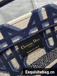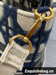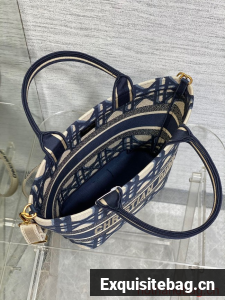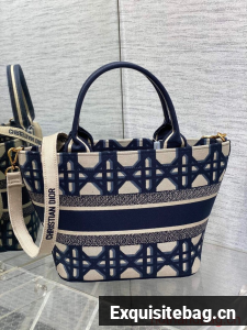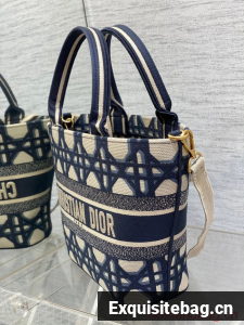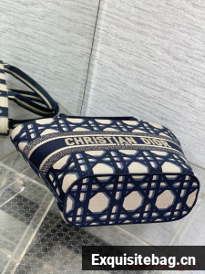 MEDIUM DIOR HAT BASKET BAG Beige and Blue Macrocannage Embroidery M1328C