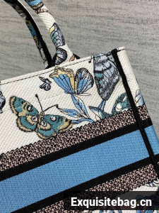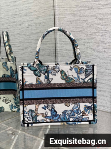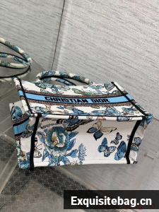 :: SMALL DIOR White and Pastel Midnight Blue Toile de Jouy Mexico Embroidery M1296ZRG