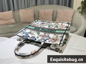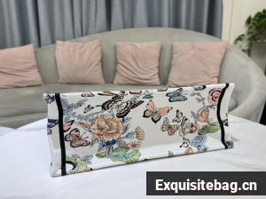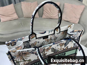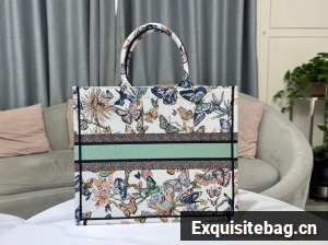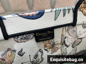 The Dior Book Tote is a House classic designed by Maria Grazia Chiuri, Creative Director of Christian Dior. Created to hold all the daily essentials, the style is fully embroidered with a white multicolor Toile de Jouy Mexico motif by Pietro Ruffo, showcasing butterflies and traditional Mexican flowers in a concert of colors. Adorned with the Christian Dior Paris signature on the front, the medium tote exemplifies the House"s signature savoir-faire and may be carried by hand or worn over the shoulder.