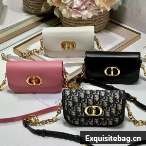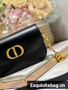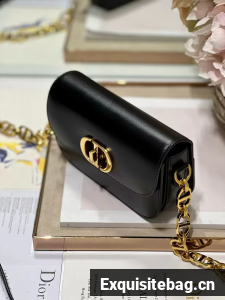 The 30 Montaigne Avenue bag enhances the hallmark line with a timeless and elegant small format. Crafted box calfskin, the rounded flap with delicate curves is punctuated by an antique gold-finish metal CD twist clasp inspired by the seal of a Christian Dior perfume bottle. The design is completed by other details, like the 30 Montaigne signature embossed on the back and the signature chain alternating gold-finish metal and tonal enamel links that match the leather. The small, gusseted bag features a refined silhouette that can be carried by hand, worn over the shoulder or crossbody.