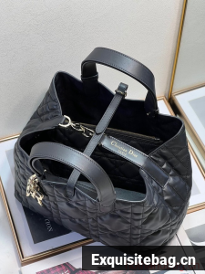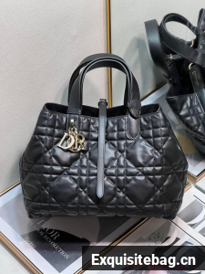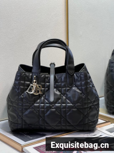 Unveiled at the Spring-Summer 2023 fashion show, the Dior Toujours bag is distinguished by a casual and practical design. Crafted in latte calfskin with Macrocannage topstitching, it showcases a spacious interior compartment with a matching pouch to organize essentials. Its leather strap closure keeps items secure while the D of the CD Lock closure twists to adjust the sides and enhance the bag"s silhouette. The leather handles can be adjusted using the small notches in order to be able to carry the medium bag by hand or wear it over the shoulder.
