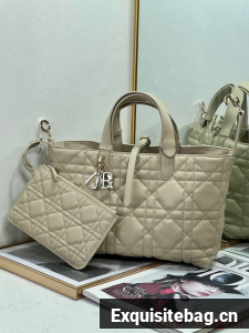 Unveiled at the Spring-Summer 2023 fashion show, the Dior Toujours bag is distinguished by a casual and practical design. Crafted in latte calfskin with Macrocannage topstitching, it showcases a spacious interior compartment with a matching pouch to organize essentials. Its leather strap closure keeps items secure while the D of the CD Lock closure twists to adjust the sides and enhance the bag"s silhouette. The leather handles can be adjusted using the small notches in order to be able to carry the medium bag by hand or wear it over the shoulder.
