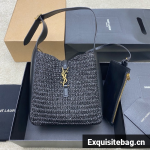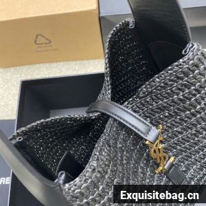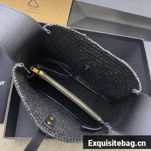 The small version of the iconic LE 5 À 7 in raffia and vegetable-tanned leather, defined by its leather tab closure decorated with the CASSANDRE.