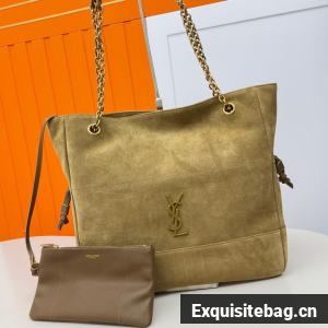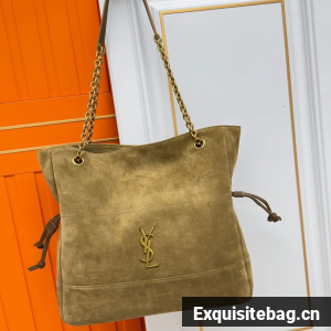 THE SHOPPING VERSION OF THE JAMIE IN SUEDE, DECORATED WITH CARRÉ RIVE GAUCHE TOPSTITCHING.