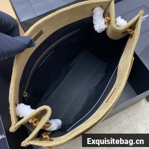 TOTE BAG IN SUEDE DECORATED WITH CHEVRON-QUILTED TOPSTITCHING AND A COVERED CASSANDRE.
