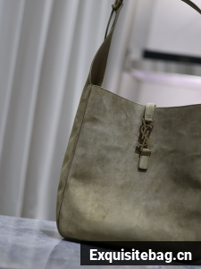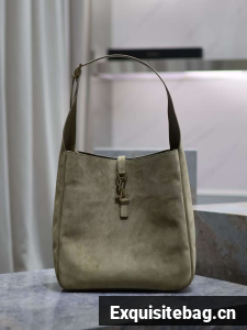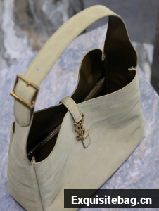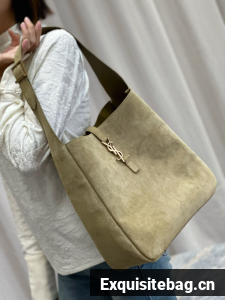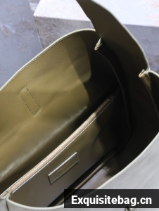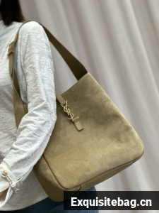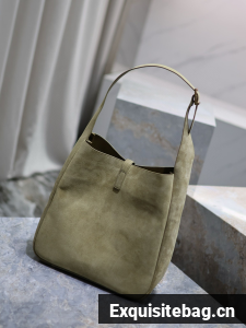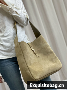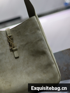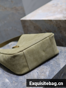 :: SAINT LAURENT LE 5 A 7 SUPPLE SMALL IN SUEDE 753837 BARLEY GREEN