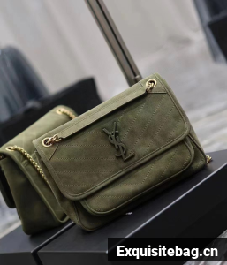 Yves Saint Laurent NIKI BABY IN QUILTED SUEDE LEATHER 498894 Dark Green