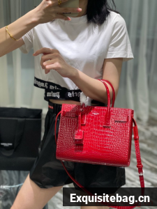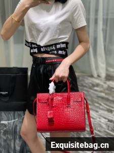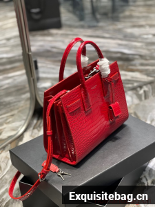 SAINT LAURENT Crocodile-Embossed Leather Organ Bag 421863 red