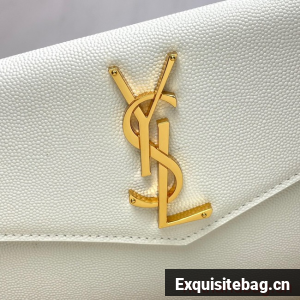 :: SAINT LAURENT UPTOWN POUCH IN GRAIN LEATHER 565739 WHITE