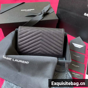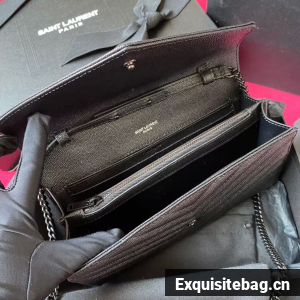 YSL WOC Classic Monogramme Flap Bag Cannage Pattern Y1003 Black & Black Tone
