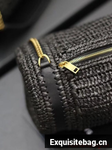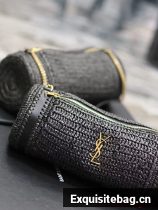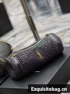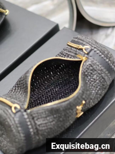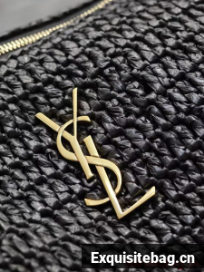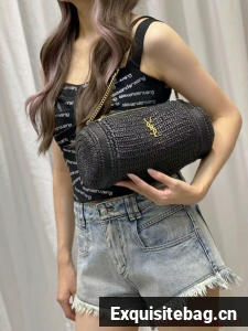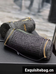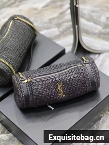 SAINT LAURENT SADE SMALL TUBE BAG IN RAFFIA AND LEATHER Y996704 BLACK