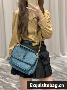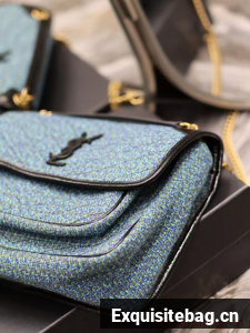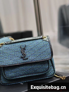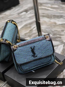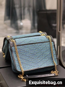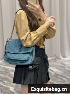 SAINT LAUREN NIKI MEDIUM CHAIN BAG IN Tweed LEATHER Y933158 blue