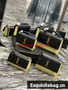 SAINT LAURENT SUNSET SMALL IN SMOOTH LEATHER 441972 black&yellow