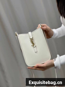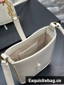 SAINT LAURENT LE 5 A 7 MINI VERTICAL IN SHINY LEATHER 7352142 BLANC VINTAGE