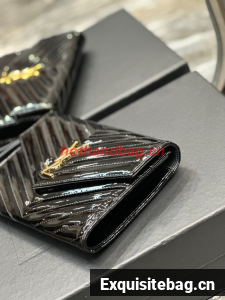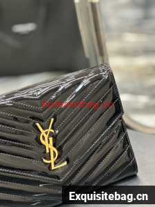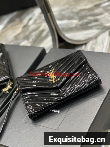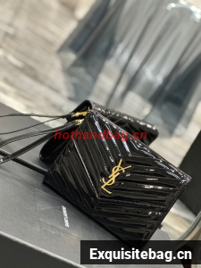 SAINT LAUREN CASSANDRE MATELASSE FLAP POUCH IN PATENT LEATHER 617662 black