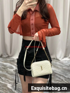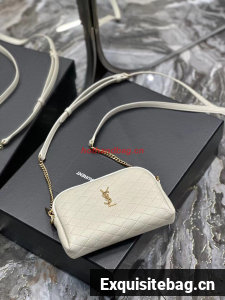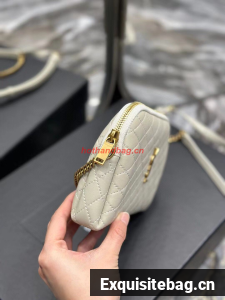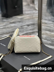 SAINT LAUREN GABY ZIPPED POUCH IN QUILTED LAMBSKIN 7336671 BLANC VINTAGE