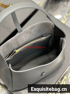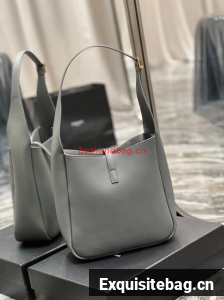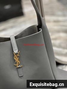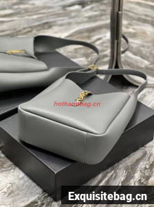 :: SAINT LAUREN LE 5 A 7 SOFT SMALL HOBO BAG IN SMOOTH LEATHER 713938 gray