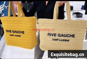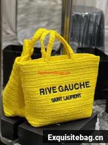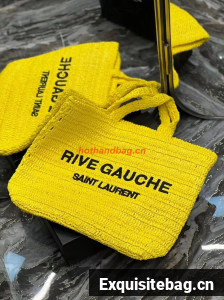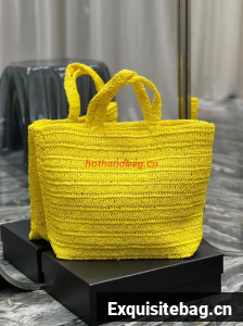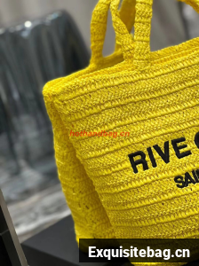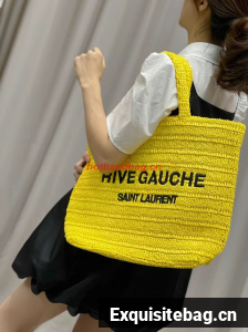 SAINT LAURENT RIVE GAUCHE SUPPLE TOTE BAG IN RAFFIA CROCHET 688864 yellow