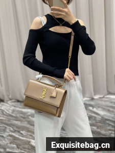 SAINT LAURENT MONOGRAM MEDIUM SATCHEL BAG WITH FRONT FLAP DECORATED WITH METAL YSL INITIALS, FEATURING A LEATHER TOP HANDLE, AN ADJUSTABLE AND DETACHABLE LEATHER AND CHAIN STRAP THAT CAN BE WORN CROSSBODY OR DOUBLED ON THE SHOULDER, A AND A REMOVABLE LEATHER-ENCASED KEY RING TAB.