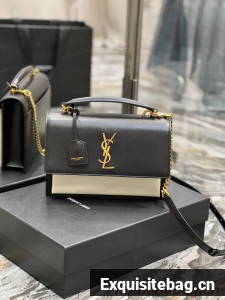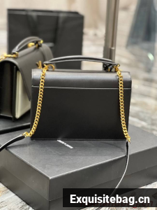 SAINT LAUREN SUNSET MEDIUM TOP HANDLE IN SMOOTH LEATHER 634723 BLACK
