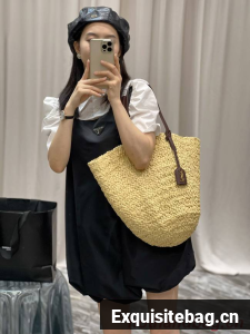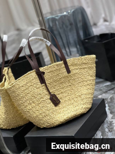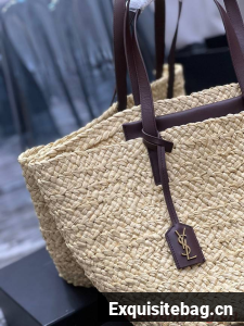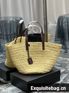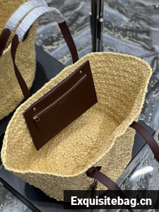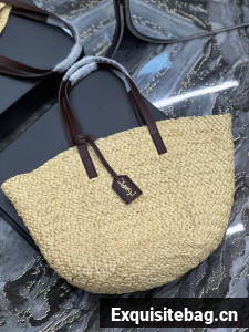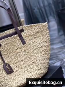 BASKET BAG WITH LEATHER HANDLES, FEATURING A LEATHER-ENCASED KEY HOLDER DECORATED WITH ICONIC YSL SIGNATURE.