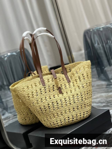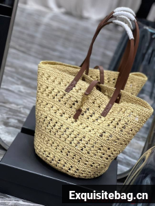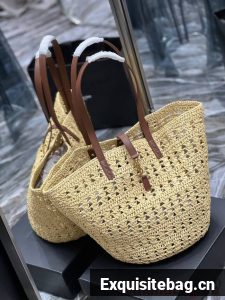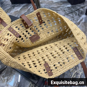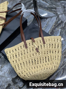 PANIER MEDIUM BAG DECORATED WITH AN ALL-OVER CROCHET PATTERN, FEATURING AN INTERLACED METAL YSL INITIALS HOOK CLOSURE AND A SHORT LEATHER STRAP FOR CASUAL SHOULDER WEAR.