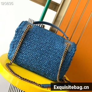 SAINT LAURENT NIKI MEDIUM CHAIN BAG IN RAFFIA 498894 Blue