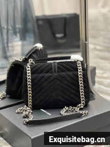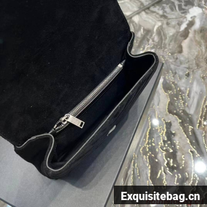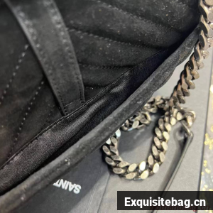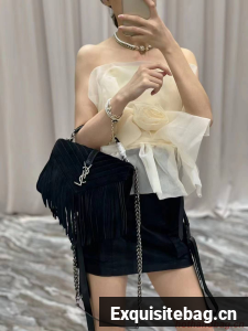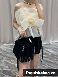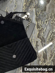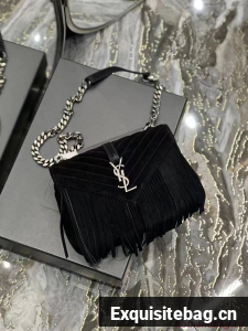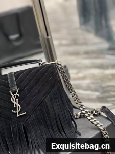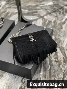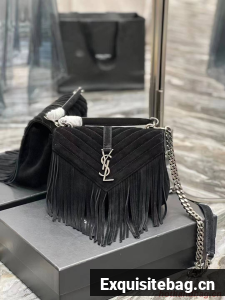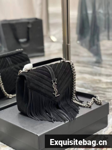 SAINT LAURENT MONOGRAM BAG DECORATED WITH CHEVRON-QUILTED OVERSTITCHING AND METAL YSL INITIALS, A FRONT FLAP TRIMMED WITH SIGNATURE FRINGE FEATURING A TOP HANDLE AND REMOVABLE CHAIN AND LEATHER SHOULDER STRAP.