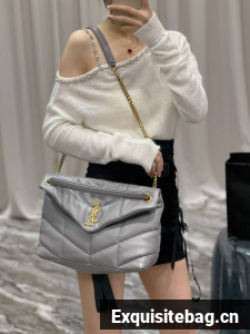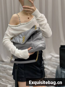 :: Yves Saint Laurent PUFFER SMALL CHAIN BAG IN QUILTED LAMBSKIN 5774761 gray
