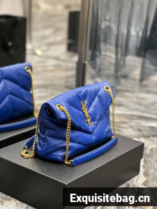 :: Yves Saint Laurent PUFFER SMALL CHAIN BAG IN QUILTED LAMBSKIN 5774761 blue