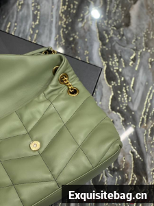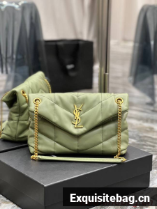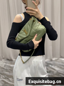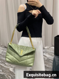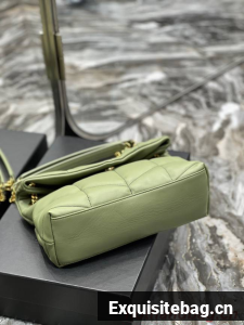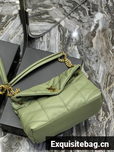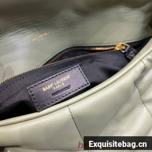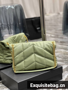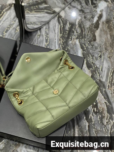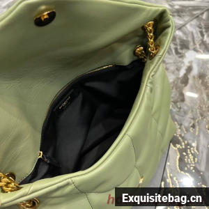 Yves Saint Laurent LOULOU PUFFER MEDIUM BAG IN QUILTED CRINKLED MATTE LEATHER Y577475 LIGHT GREEN