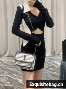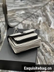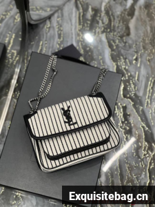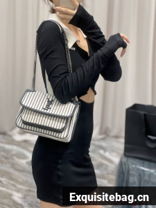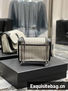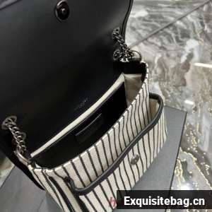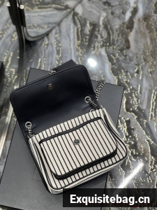 SAINT LAURENT MONOGRAM BAG WITH FRONT FLAP MADE WITH RECYCLED COTTON, LEATHER-ENCASED YSL MONOGRAM, CHAIN AND LEATHER CONVERTIBLE SHOULDER STRAP AND A CENTRAL COMPARTMENT.