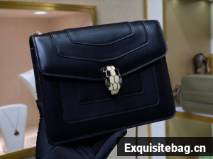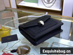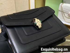 :: BVLGARI mini Serpenti Forever Shoulder Bag Calfskin Leather 35107 Black