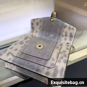 Clasp fastening at frontFlap-cover design, Serpenti head closure with malachite eyes, hardware, snake-chain body strap, pockets at interior, pocket mirror at interior100% calf leatherHeight 20cm, width 15cm, depth 5cmMade in ItalyReplica Bvlgari comes with:serial numbers, care booklet, dust bag, Card, tag.