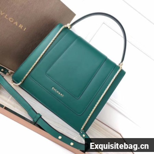 BVLGARI Original Calfskin Leather Tote Bag 3782 Green