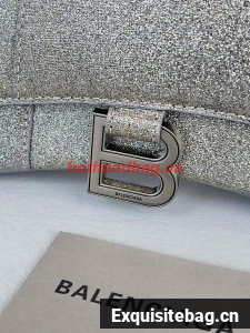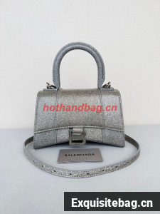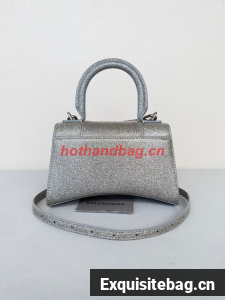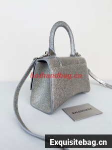 :: Balenciaga WOMENS HOURGLASS XS HANDBAG IN SPARKLING FABRIC 592833 IN SILVER