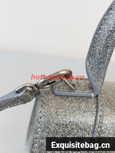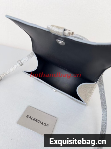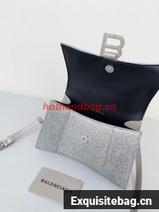 Balenciaga WOMENS HOURGLASS XS HANDBAG IN SPARKLING FABRIC 592833 IN SILVER