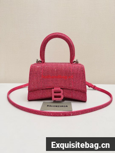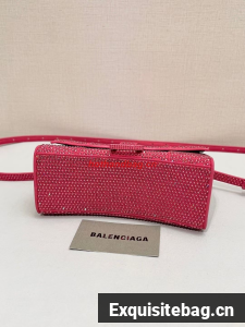 :: Balenciaga WOMENS HOURGLASS XS HANDBAG WITH RHINESTONES 283328 IN PINK