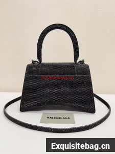 Balenciaga WOMENS HOURGLASS SMALL HANDBAG WITH RHINESTONES 592834 black