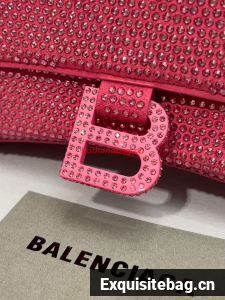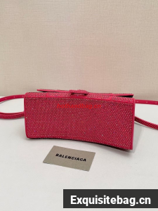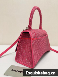 Balenciaga WOMENS HOURGLASS SMALL HANDBAG WITH RHINESTONES 592834 pink