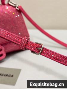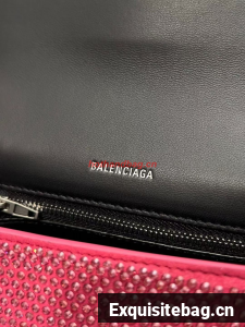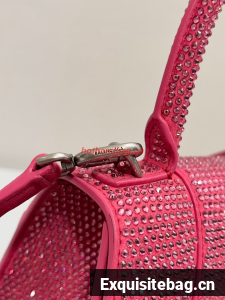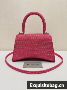 :: Balenciaga WOMENS HOURGLASS SMALL HANDBAG WITH RHINESTONES 592834 pink