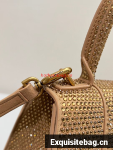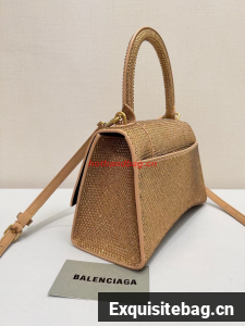 :: Balenciaga WOMENS HOURGLASS SMALL HANDBAG WITH RHINESTONES 592834 gold