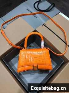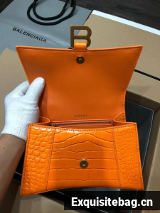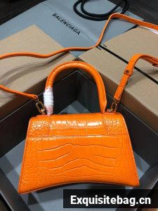 :: Balenciaga HOURGLASS SMALL TOP HANDLE BAG crocodile embossed calfskin B108895C Orange