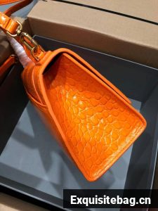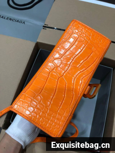 Balenciaga HOURGLASS SMALL TOP HANDLE BAG crocodile embossed calfskin B108895C Orange