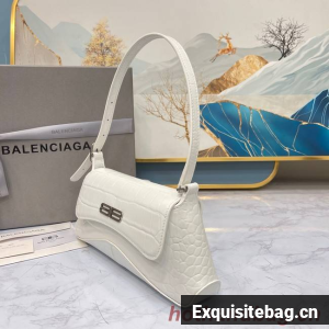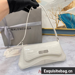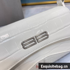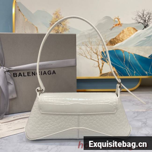 Balenciaga LINDSAY CROCODILE EMBOSSED SMALL SHOULDER BAG WITH STRAP 6009 white