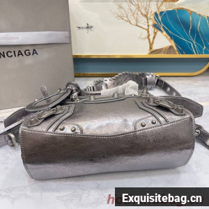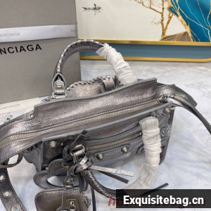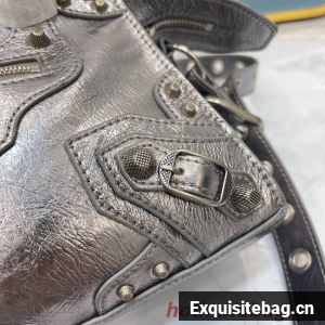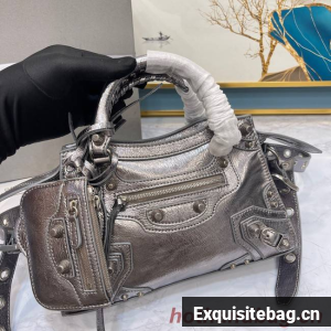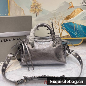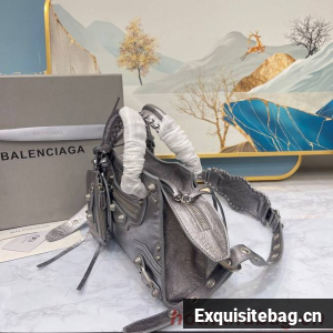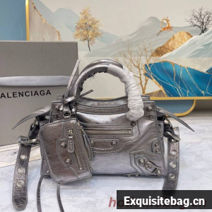Neo Cagole XS Handbag in dark grey Arena lambskin, aged-silver hardwareDimensions : L10,2 x H7 x W4,5 inch• Arena lambskin• Trapezoidal shape• Two leather hand-braided handles • Adjustable and removable strap (19,6 inch)• Aged-silver hardware • Zipped closure with knotted leather puller • Front zipped pocket with knotted leather puller • 1 inner zipped pocket • 1 removable zipped pouch• 1 removable heart mirror• Tone-on-tone Balenciaga logo embossed on mirror• Cotton canvas lining• Made in Italy• Wipe with a soft clothMaterial: 100% lambskinProduct ID: 700940210B05812Replica Balenciaga Comes with serial numbers, authenticity card, dust bag and care booklet.
